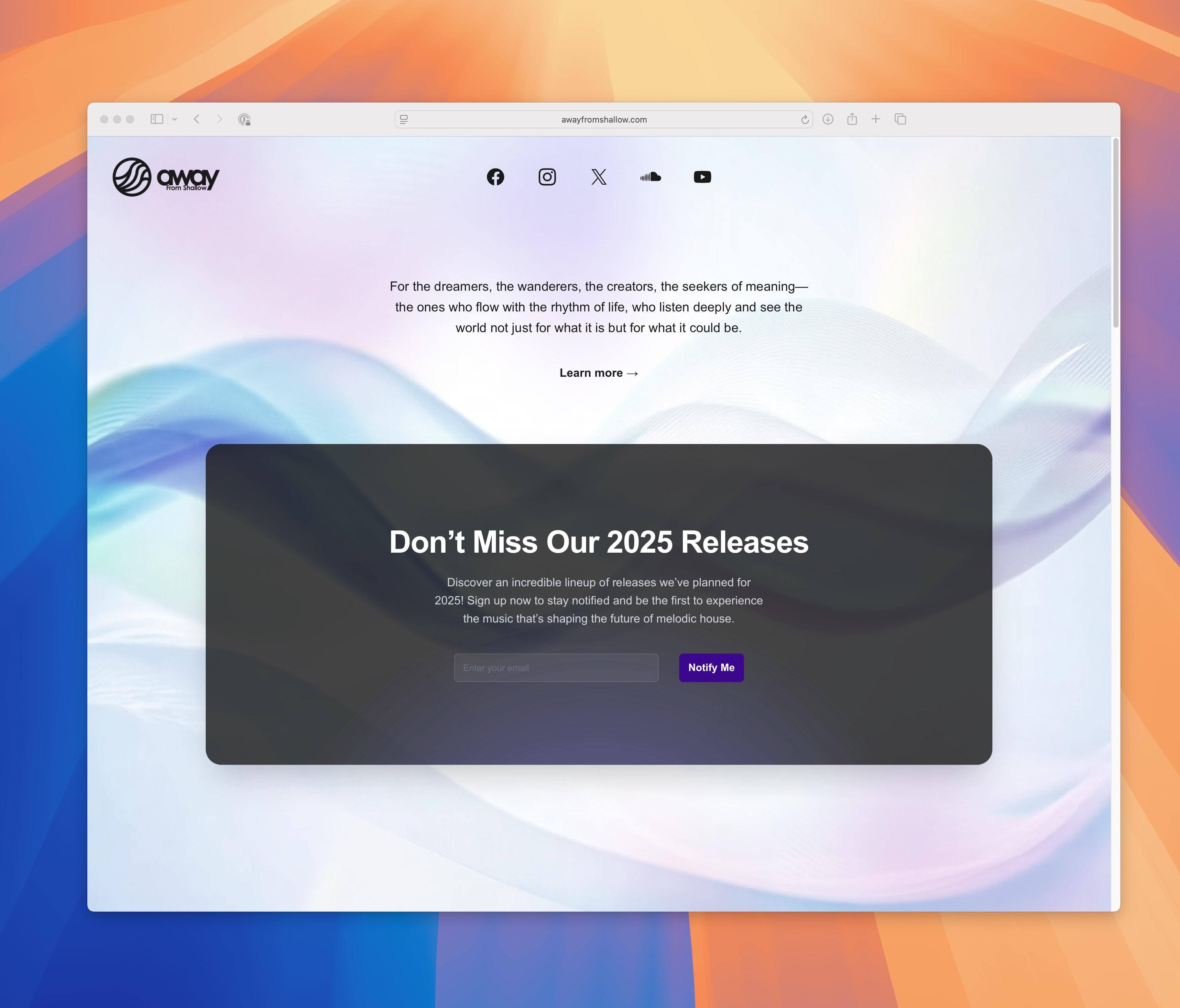 Away From Shallow emerged from our passion for melodic house music and the belief that electronic music can be both commercially viable and artistically profound. The label serves as an incubator for emerging talent, providing them with the tools, platform, and creative freedom to shape tomorrow's soundscapes.